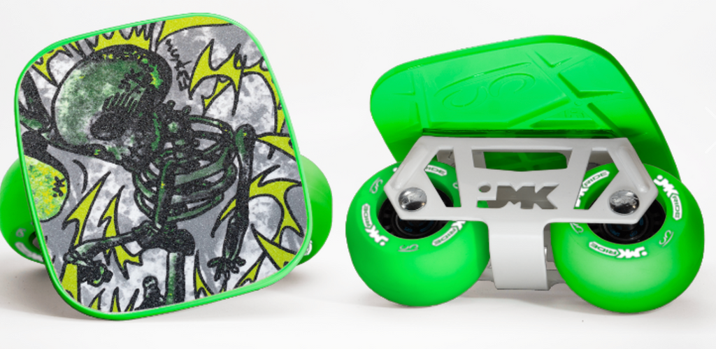 JMKRIDE - Green proformance wheels, White Trucks, Green Deck and Isamu Skeleton Grip.